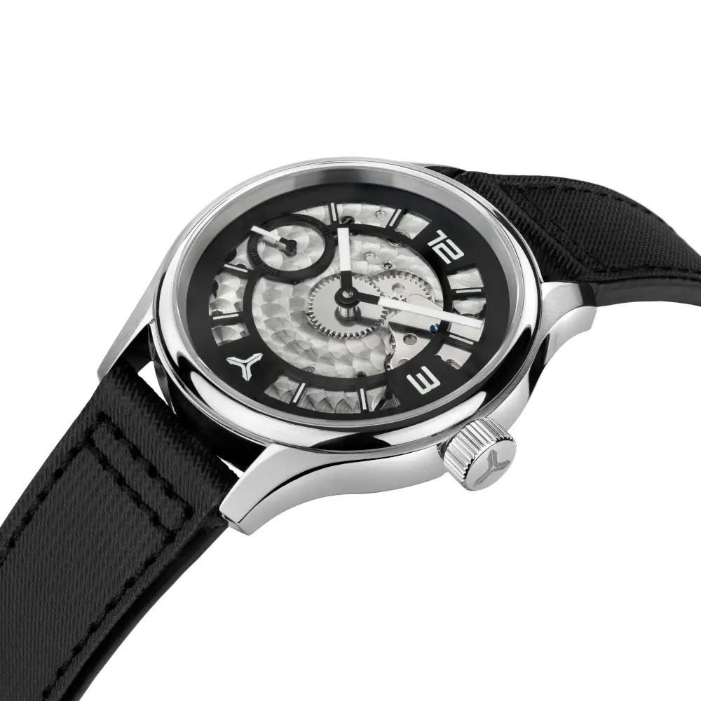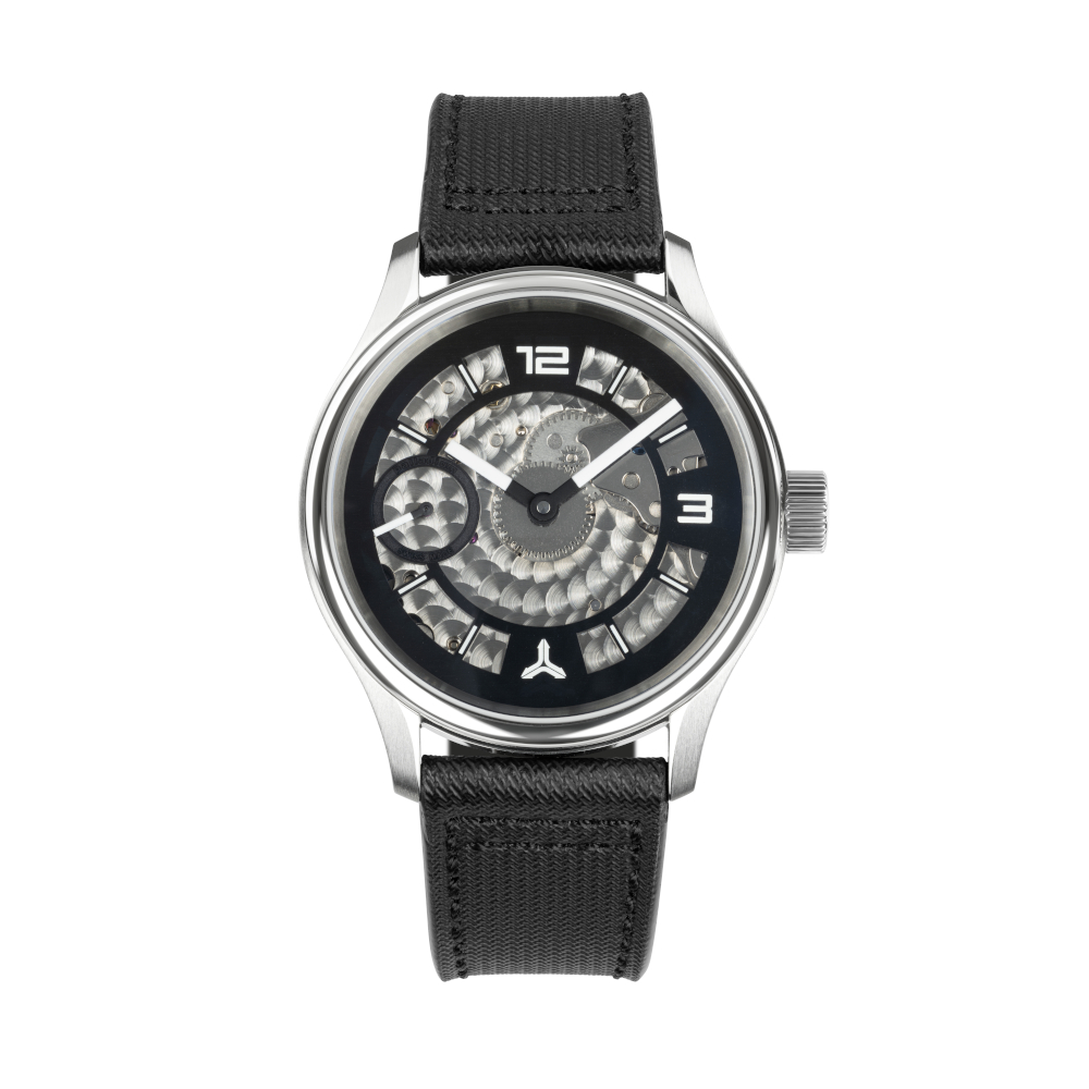 Diese aussergewöhnliche Handaufzugsuhr verzichtet bewusst auf ein klassisches Zifferblatt. Stattdessen gibt sie den Blick frei auf das kunstvoll perlierte Uhrwerk ETA 6497-1 – ein faszinierendes Zusammenspiel aus Präzision und Ästhetik. Jeder Blick auf die Uhr wird zum Erlebnis feinster Uhrmacherkunst.