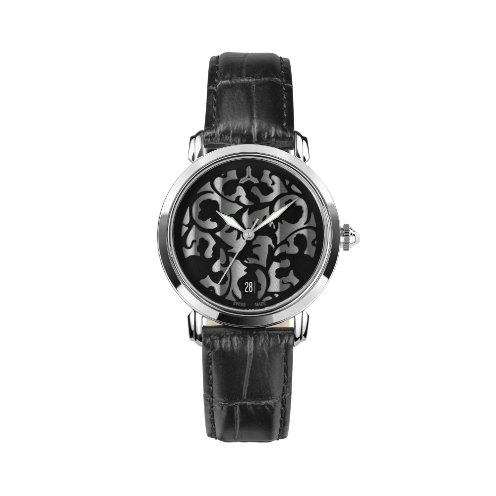 Die Silhouette ist eine elegante Damenuhr mit einem harmonischen 36mm-Gehäuse. Ihr zweilagiges Doppelzifferblatt verleiht dem Design eine plastische Tiefenwirkung und setzt moderne Akzente.