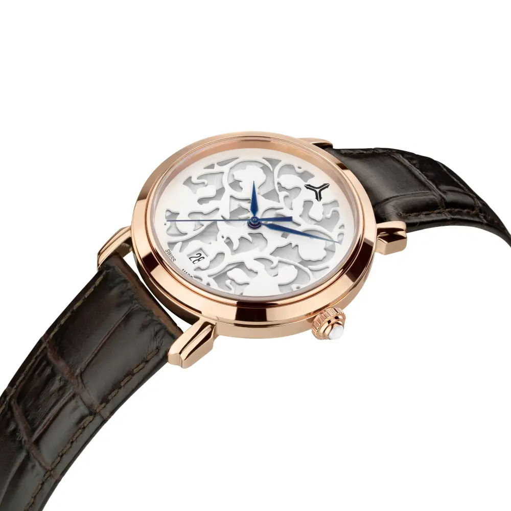 Die Silhouette ist eine elegante Damenuhr mit einem harmonischen 36mm-Gehäuse mit Roségold Beschichtung. Ihr zweilagiges Doppelzifferblatt verleiht dem Design eine plastische Tiefenwirkung und setzt moderne Akzente.
